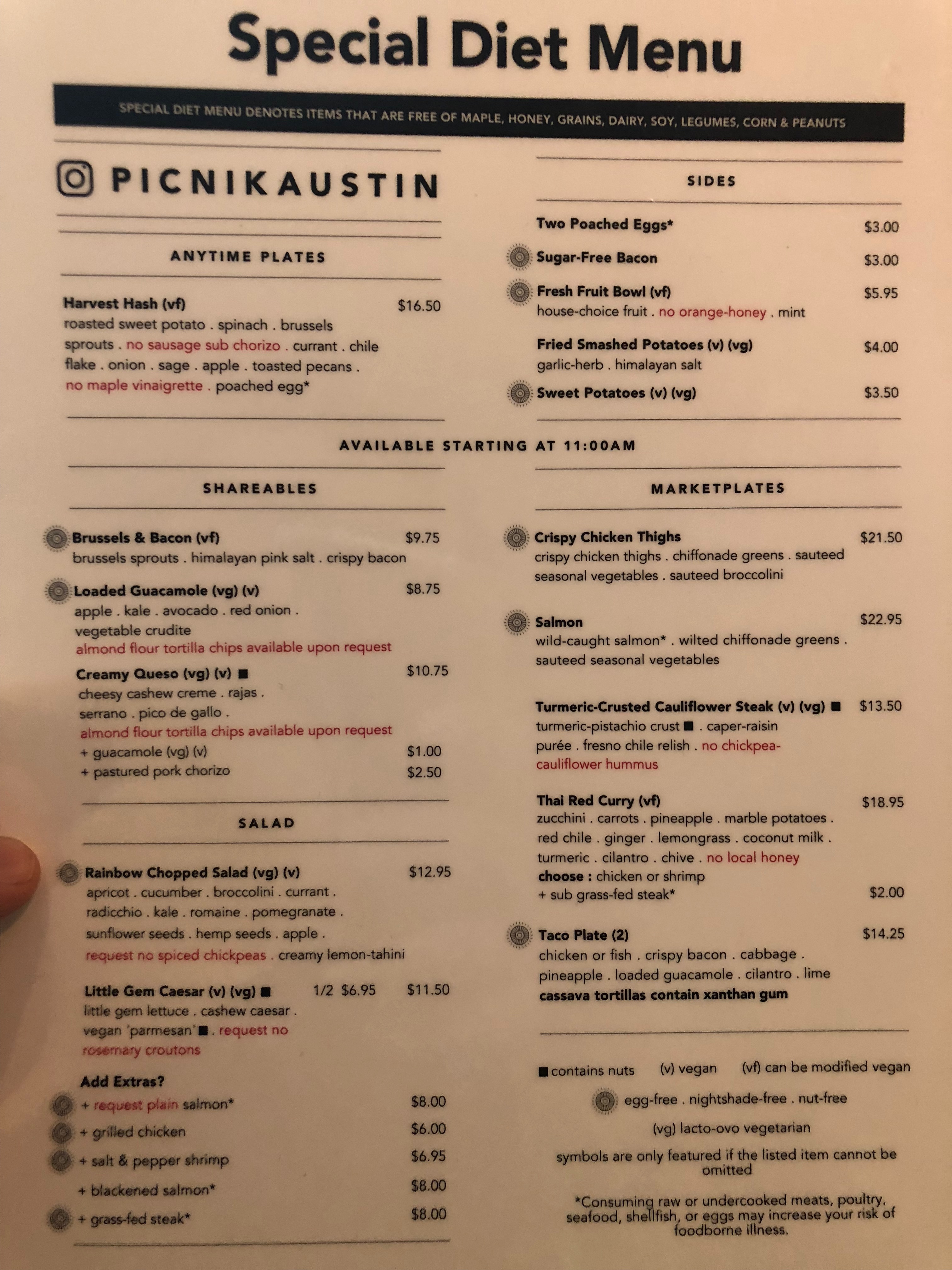 Within 48 hours I was able to eat normal food with only mild soreness. And Erica and I went to an incredible restaurant called Picnik. Check out this AMAZING menu which works perfectly with my diet.